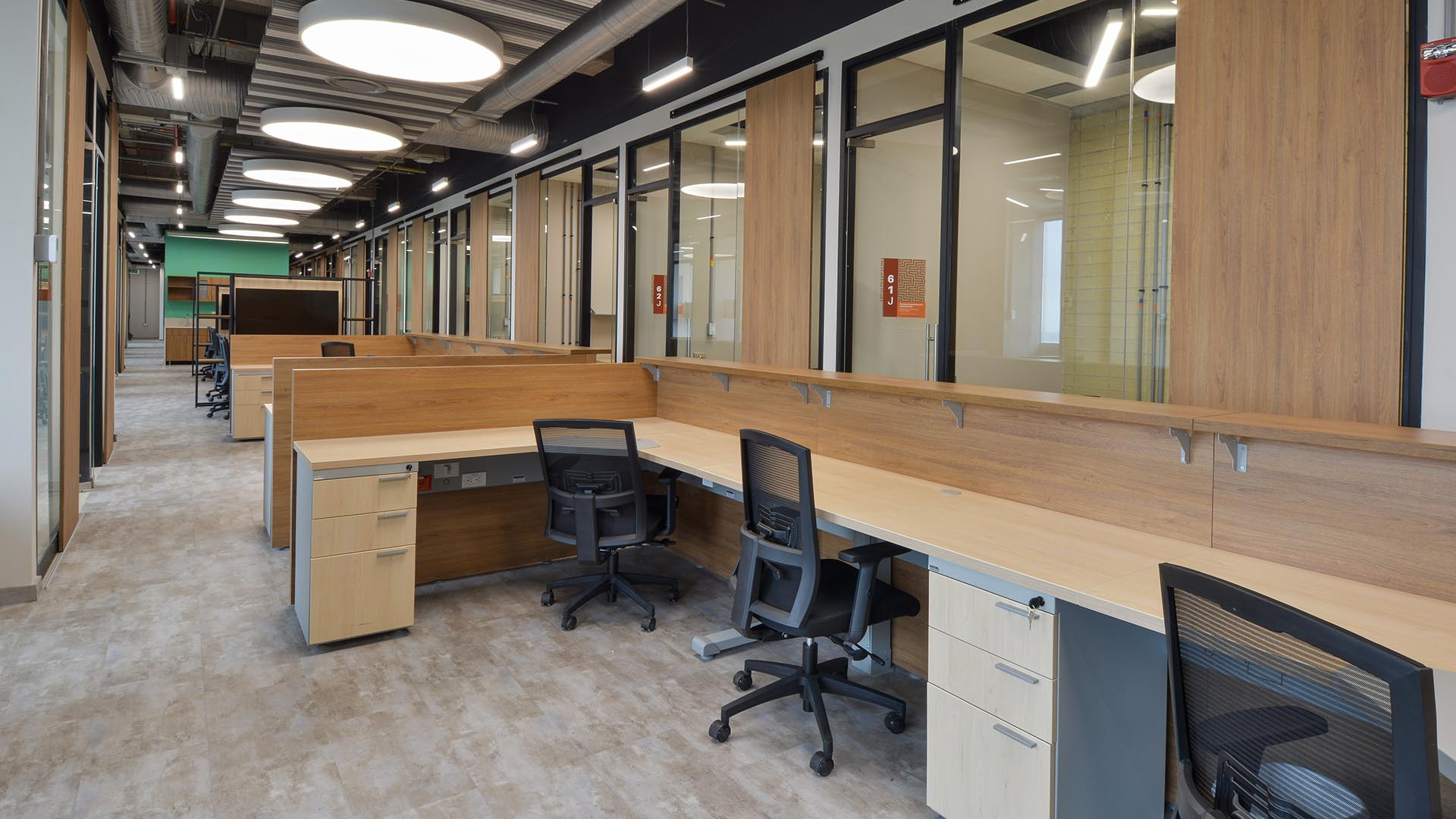 La implementación de luminarias y dotación de mobiliario exclusivo para sus diferentes espacios de trabajo, como puestos operativos, salas de reuniones, espacios de trabajo colaborativo y cafetería generan espacios confortables y atractivos que tienen como objetivo impactar positivamente la productividad del personal.